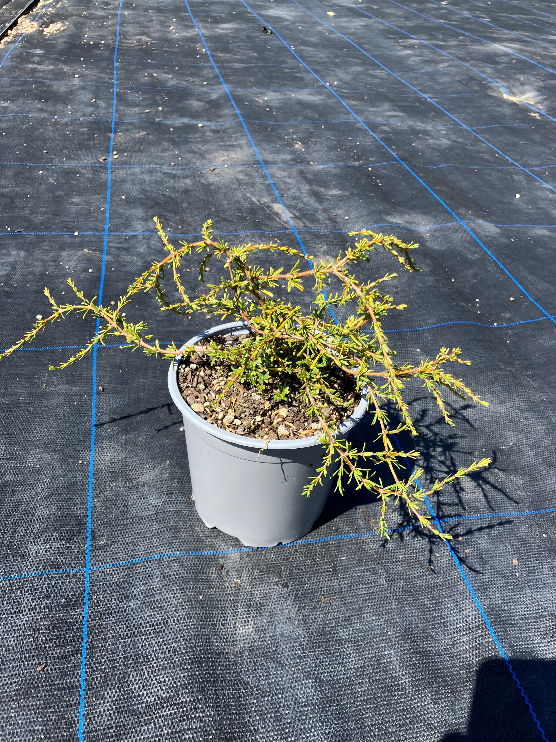 A compact groundcover that thrives in dry conditions and especially loves coastal situations. Coprosma ‘Hawera’ features divaricating orange stems and thin green leaves. Will spread to about 1m in width. Does not tolerate heavy frost or poorly draining soil.